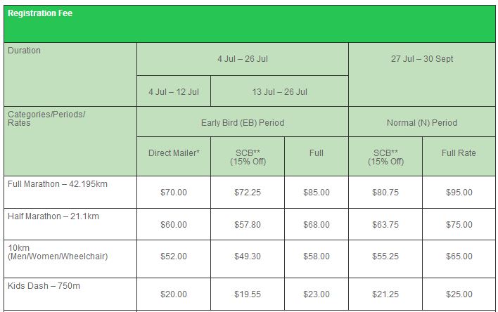 Singapore Marathon, 2023 Dates, Race Times & Registration Fees. The event usually comprises some races varying in length and difficulty: Marathon, Half-Marathon, 10km and 5km. There is also a 600-metre Kids Dash for kids up to 13 years of age. Up to 50,000 runners are expected to participate in this event, so register early to secure your place. Standard Chartered Singapore Marathon 2023 is back! Go beyond on 1 - 3 Dec with the return of road racing, Marathon 42.195km and Half Marathon 21.1km events! ![]()